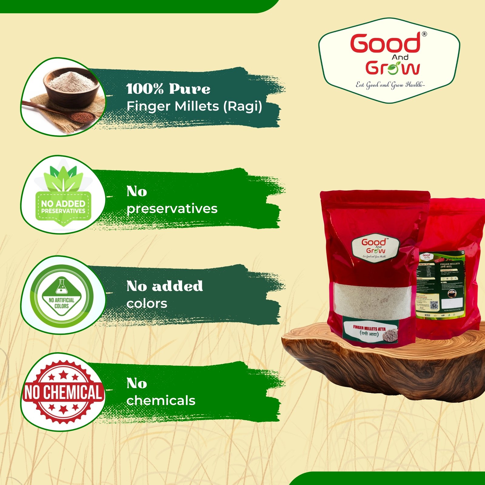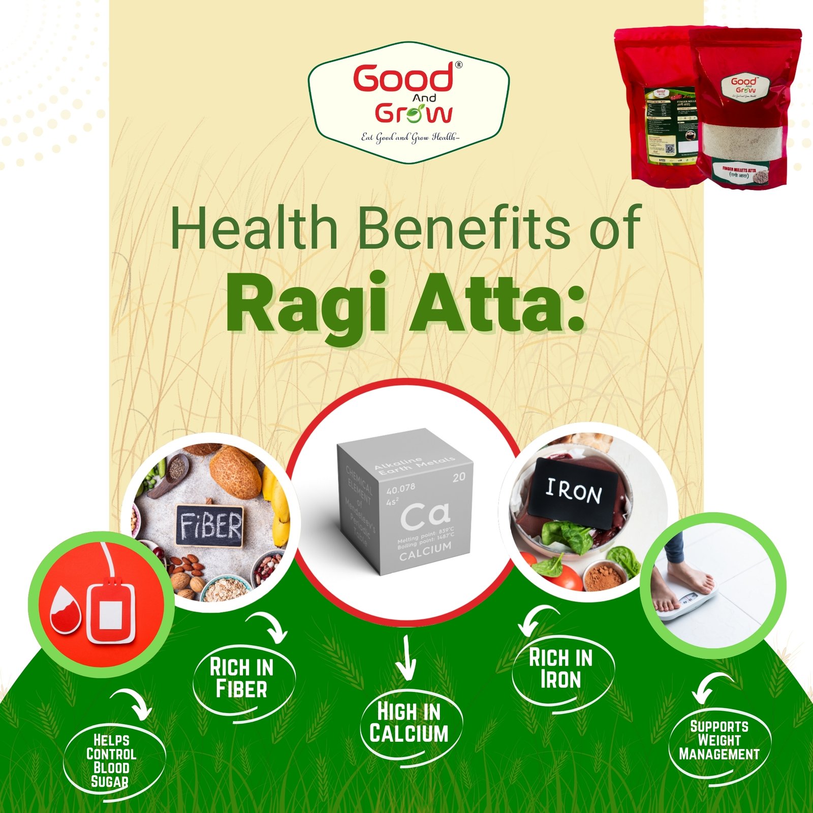Ragi Millets Atta is a finely ground flour made from whole Ragi (Finger Millet) – a powerhouse grain known for its calcium content, fiber, and iron. Naturally gluten-free, vegan, and cholesterol-free, Ragi Atta is ideal for all age groups, especially growing children, elderly individuals, and people managing diabetes or weight.